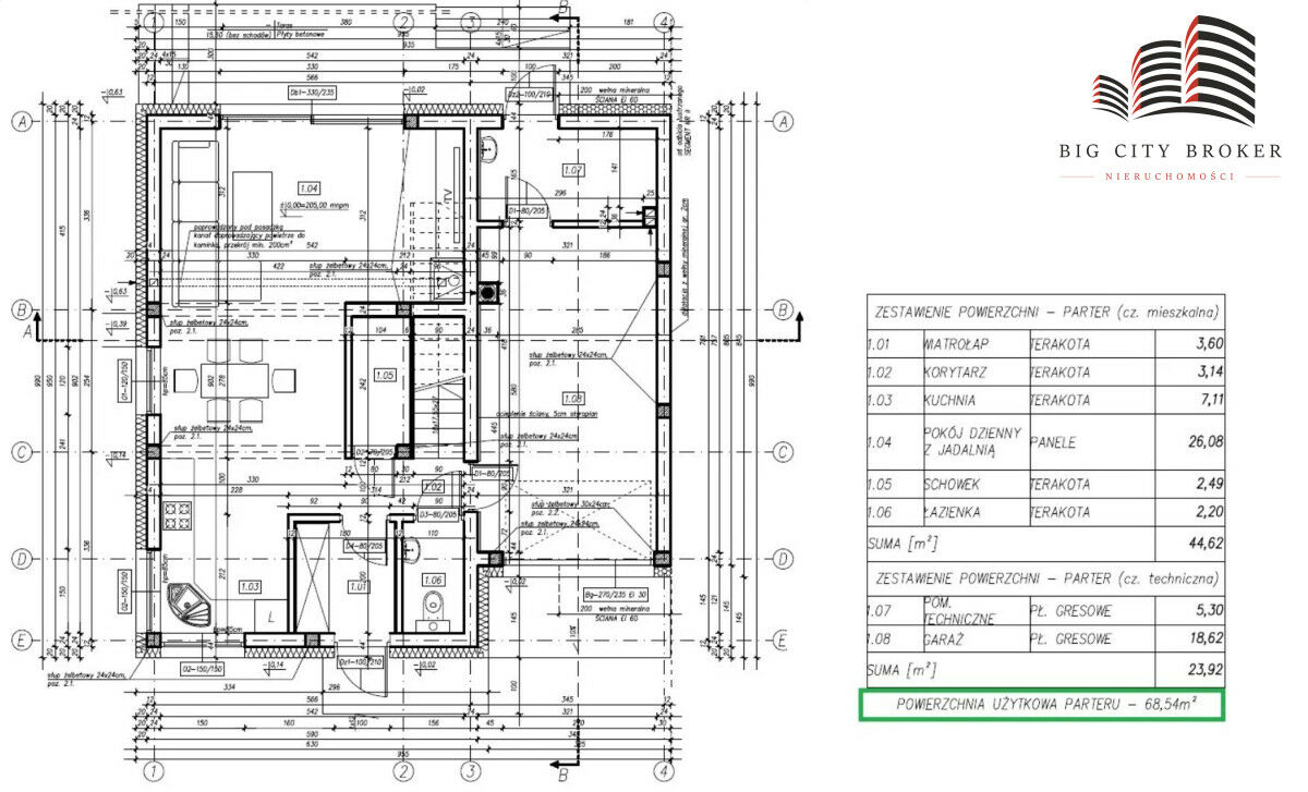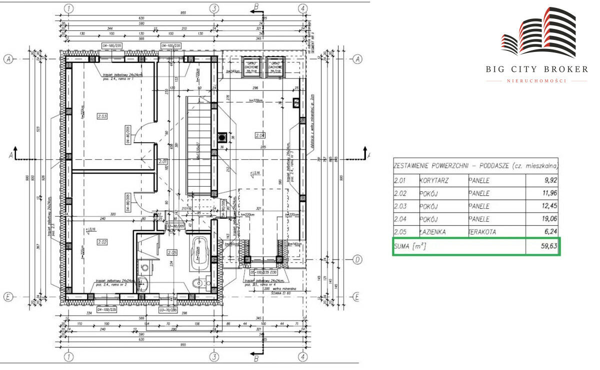 - strych - dodatkowa przestrzeń (nie wliczona do powierzchni użytkowej),